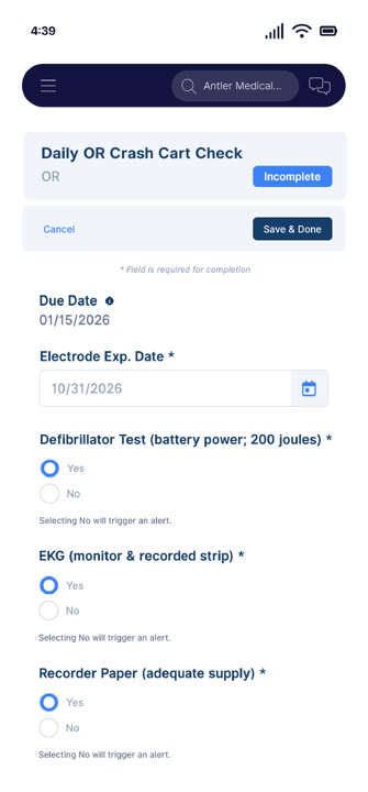Standardized, auditable regulatory logs to ensure daily checks are completed and properly documented.