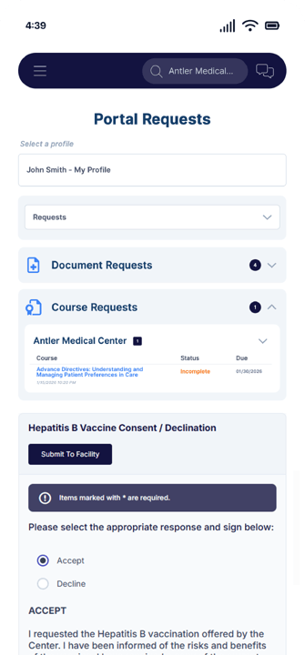 Centralized training, online completion, competency tracking, and renewal reminders.